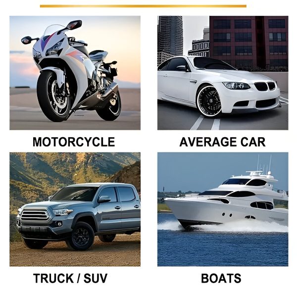 Përdorni CARCOAT në makinë, varka, motoçikleta, kamperë, ATV dhe më shumë. Është i sigurt për të gjitha sipërfaqet, përfshirë bojën, plastikën dhe xhamin.
